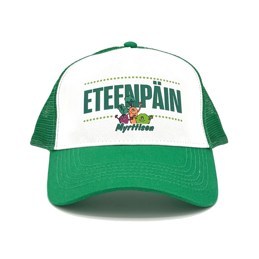 Myrttisen Energy & Recovery -energiajuoman innoittama trucker-mallinen lippis.