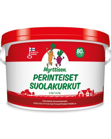 Suolakurkut on maustettu valkosipulilla ja tillillä Myrttisen perinteisen reseptin mukaan. Myrttisen perinteiset suolakurkut valmistetaan fermentoimalla eli ne tekevät vatsalle hyvää maitohappobakteeriensa ansiosta.